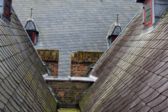 - Het dakvlak met leien moet altijd lager liggen dan een geveltop zodat er voldoende ruimte is om een goede loodafdekking te verwezenlijken bij de rand. Verholen goten bij een leien dak worden bij beschermde monumenten doorgaans niet toegestaan.