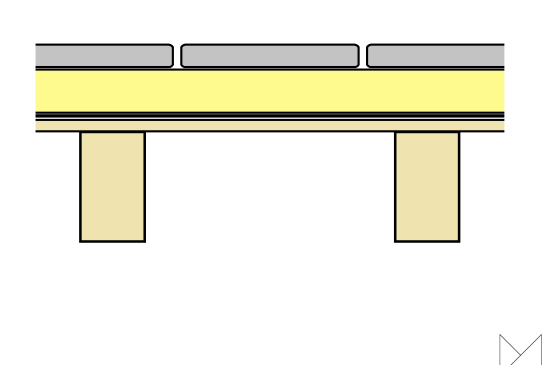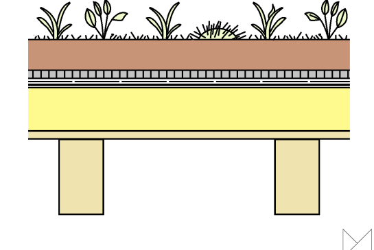 Bij een traditioneel geïsoleerd dak wordt op het bestaande platte dak het isolatiemateriaal aangebracht met daar bovenop de dakbedekking. Eventueel kan hierboven nog grindbalast worden aangebracht.Bij een lage dakopstand kan een verdiepte geul rondom de dakranden noodzakelijk zijn ten behoeve van de afwatering.