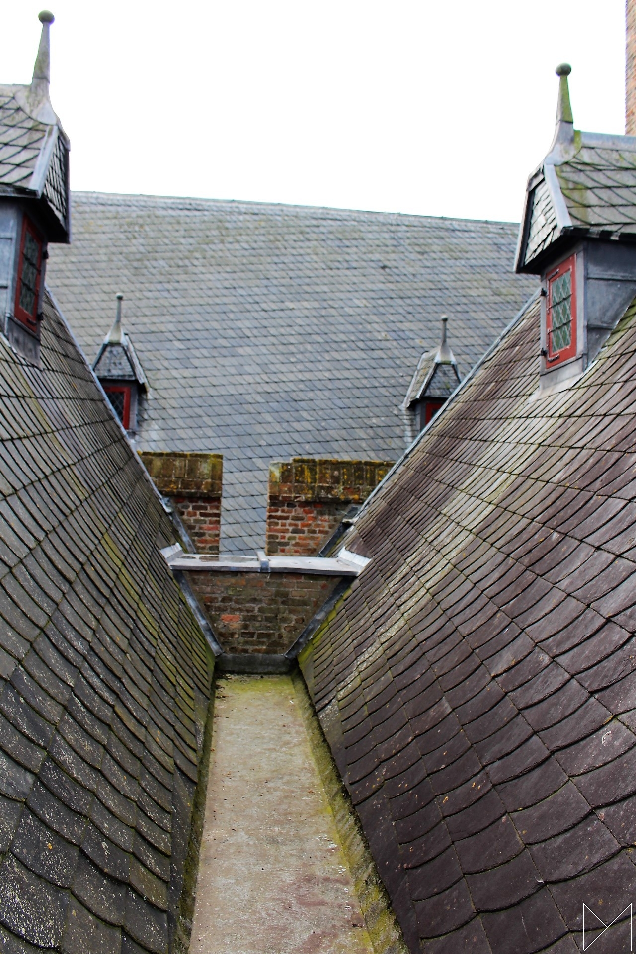- Het dakvlak met leien moet altijd lager liggen dan een geveltop zodat er voldoende ruimte is om een goede loodafdekking te verwezenlijken bij de rand. Verholen goten bij een leien dak worden bij beschermde monumenten doorgaans niet toegestaan.