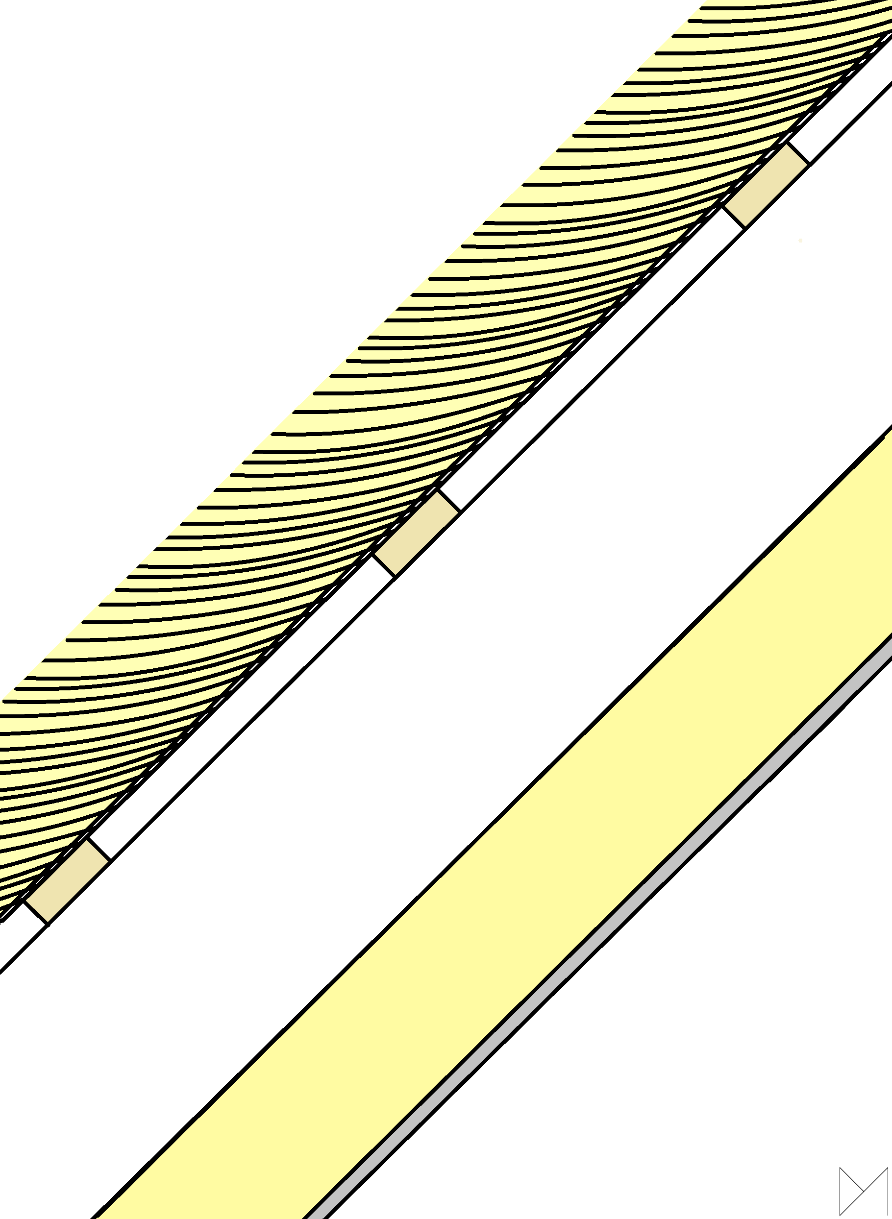 Een luchtspouw van minimaal 30 mm wordt aangebracht tussen het beschot en het isolatiemateriaal. Deze luchtspouw moet geventileerd worden met buitenlucht. Het is van belang dat deze ventilatie goed gewaarborgd is omdat anders vochtproblemen kunnen ontstaan die kunnen leiden tot een rottende dakconstructie. In de praktijk is gebleken dat het boren van een paar gaten onder en boven in het dakbeschot op termijn niet toereikend is. De gaten kunnen door o.a. vuil en stof dichtslibben. Het is daarom aan te bevelen om voldoende ventilatieroosters aan te brengen.