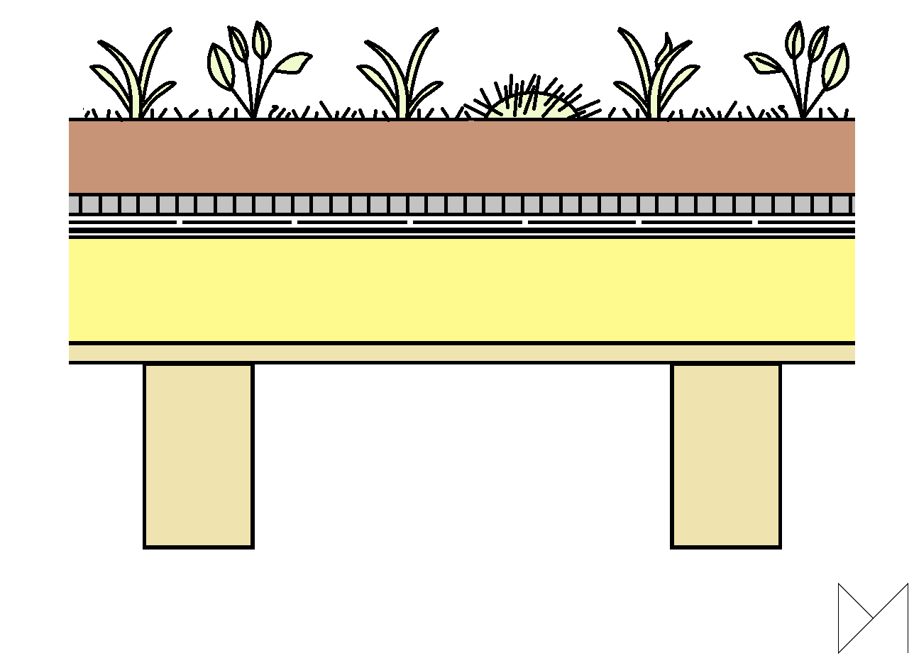 Bij een sedumdak of groendak wordt op het isolatiemateriaal en de dakbedekking een laag vegetatie aangebracht. Deze laag bestaat doorgaans uit een vegetatiemat (sedum of gras) met een voedingslaag (substraat), een filtervlies en een drainagelaag. Het pakket vervangt de grindlaag. De voordelen van een sedum of groendak is met name de verhoging van de levensduur van de dakbedekking en isolatie tegen de warmte in de zomer. Daarnaast houdt het dak meer water vast zodat minder regenwater in het riool verdwijnt. Wel moet de bestaande dakconstructie toereikend zijn om het zwaardere pakket te dragen.