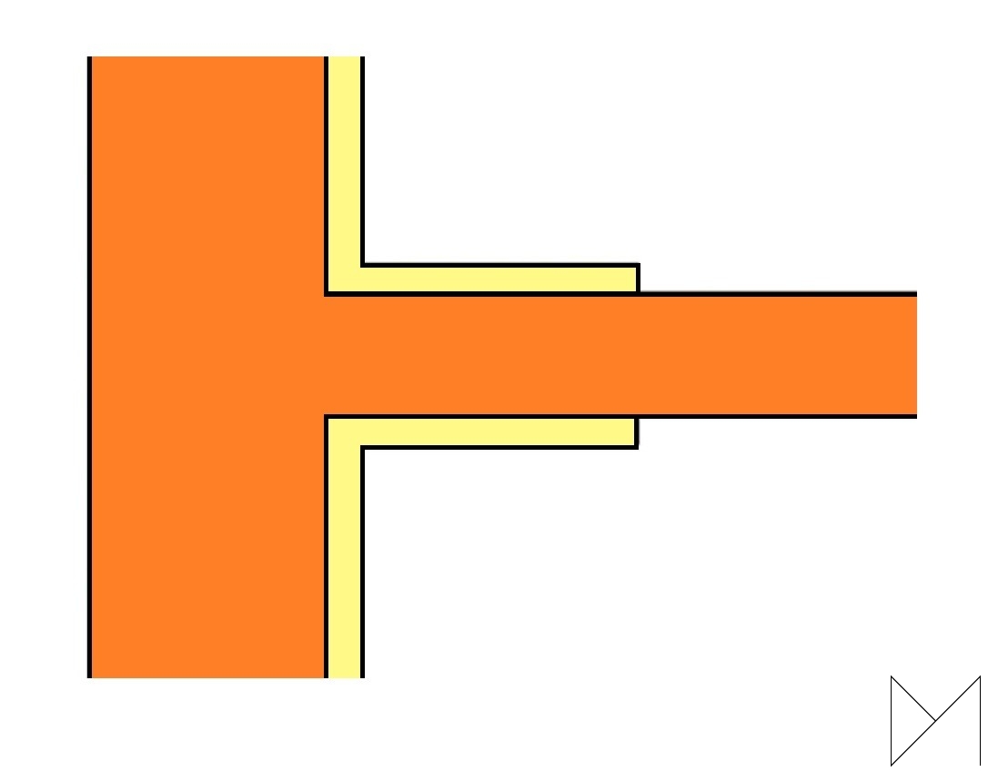 Bij de aansluiting van binnenwanden op een massieve buitenmuur, ontstaan ook koudebruggen omdat het isolatiemateriaal hier niet kan worden doorgezet. Bij het koudere vlak kan dan vervolgens condensvorming en schimmel optreden. Als oplossing zou de binnenwand bij de aansluiting op de buitenmuur aan weerszijden met isolatiemateriaal kunnen worden bekleed. In de regel is 500 mm doorzetten van het isolatiemateriaal tegen de binnenwand afdoende. Bij lichte, niet dragende, scheidingswanden kan de wand eventueel worden losgehaald van de buitenmuur en het isolatiemateriaal worden doorgezet.
