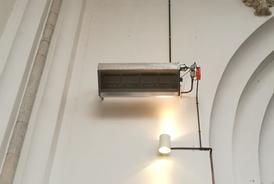 Er bestaan zowel elektrische als gasgestookte stralingsarmaturen. Bij gasgestookte stralingsarmaturen komt bij verbranding veel waterdamp en CO2 vrij. Het vocht kan nadelig werken voor interieuronderdelen en tot sterke condensatie leiden op ramen, wanden en plafonds. Daarnaast vraagt het aanleggen van gasleidingen vaak ongewenste boringen in monumentale onderdelen. Vandaar dat gasarmaturen overwegend niet zijn aan te raden bij monumentale complexen.